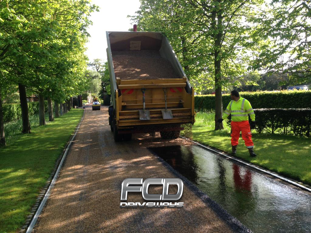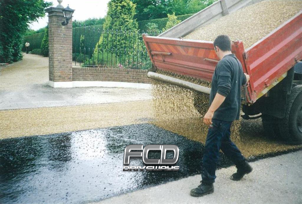 We use our own machinery to lay down the hot tar and chip which ensures no delay or reliance on any 3rd party contractor.